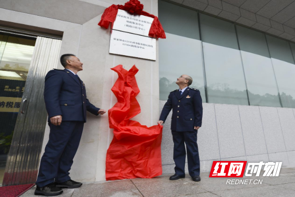 国家税务总局张家界市税务局党委书记、局长许晖(右一)参加挂牌仪式。