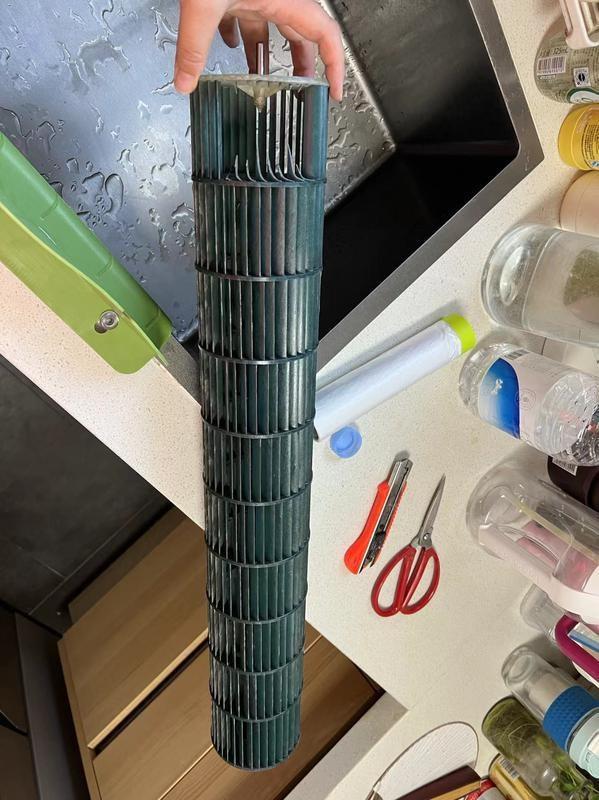 直到最近天气过于炎热,打开空调时发现噪声还是特别大,只有小风速模式才没有声音,但小风速模式完全满足不了夏天的日常使用需求。郭女士又再次联系了盒马,并且同时找了格力厂家来维修,厂家发现空调的风轮被洗碎了,从而导致使用时噪声特别大,而且冷凝器片叶也被冲变形了,本次维修共花费380元。“今年我一直在跟盒马联系,但是客服一直踢皮球,线上一直没有人工客服给出解决方案,打电话联系只要两秒钟没有接通,就会显示长时间未接通。”
