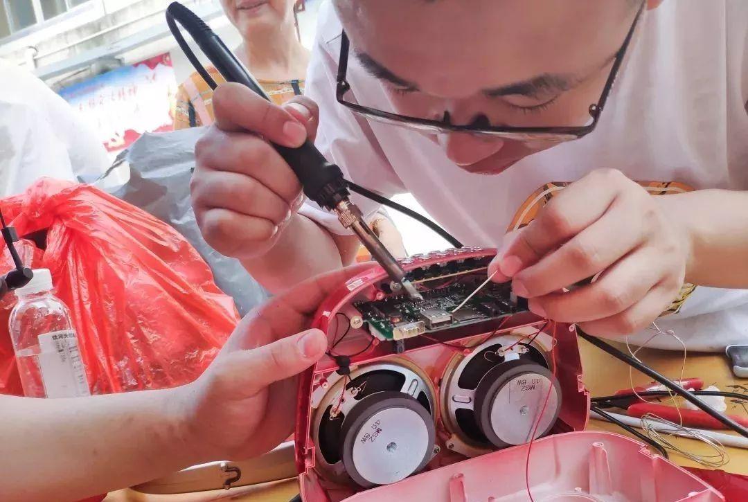 志愿者们为社区居民家中有故障的电风扇、电饭锅、拖线板、电热水壶等小家电进行了“会诊”,认真查找故障原因,仔细查看维修,让一件件废旧家电“重获新生”。