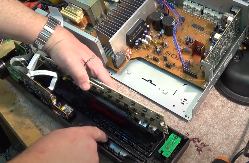 拆掉底部和侧面固定螺丝,将前面板整体拿下来。拆掉电路板上的螺丝,就可以将面板控制板拿下来。