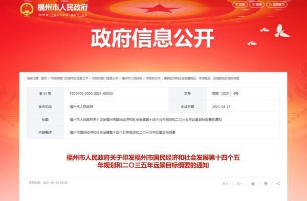5月10日,福州市人民政府网站发布《关于印发福州市国民经济和社会发展第十四个五年规划和二〇三五年远景目标纲要的通知》,其中提到将完善现代轨道交通体系。