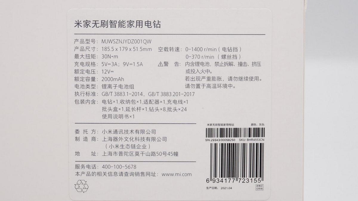 底部贴有电钻铭牌贴纸,参数信息不再赘述。