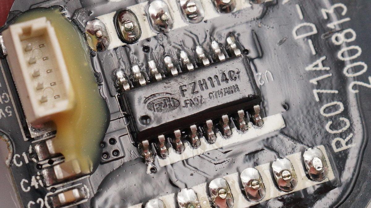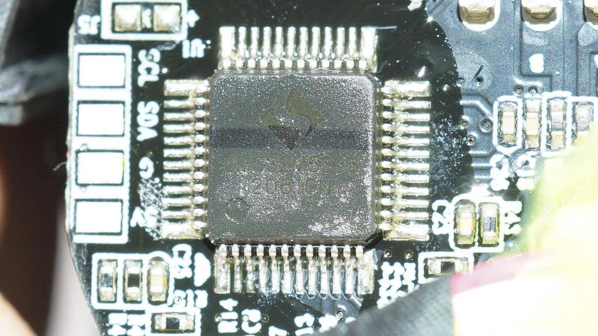 显示屏小板使用螺丝固定,背面中心有一颗芯片。