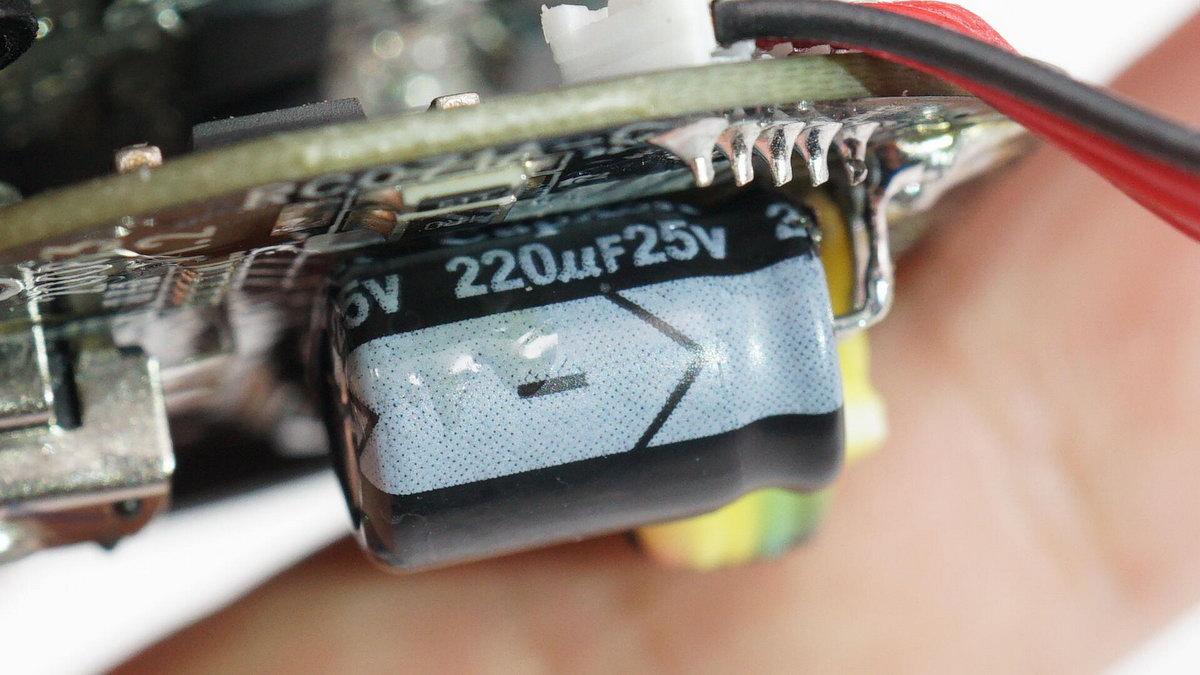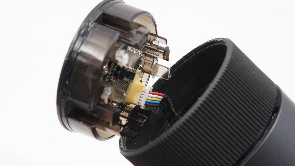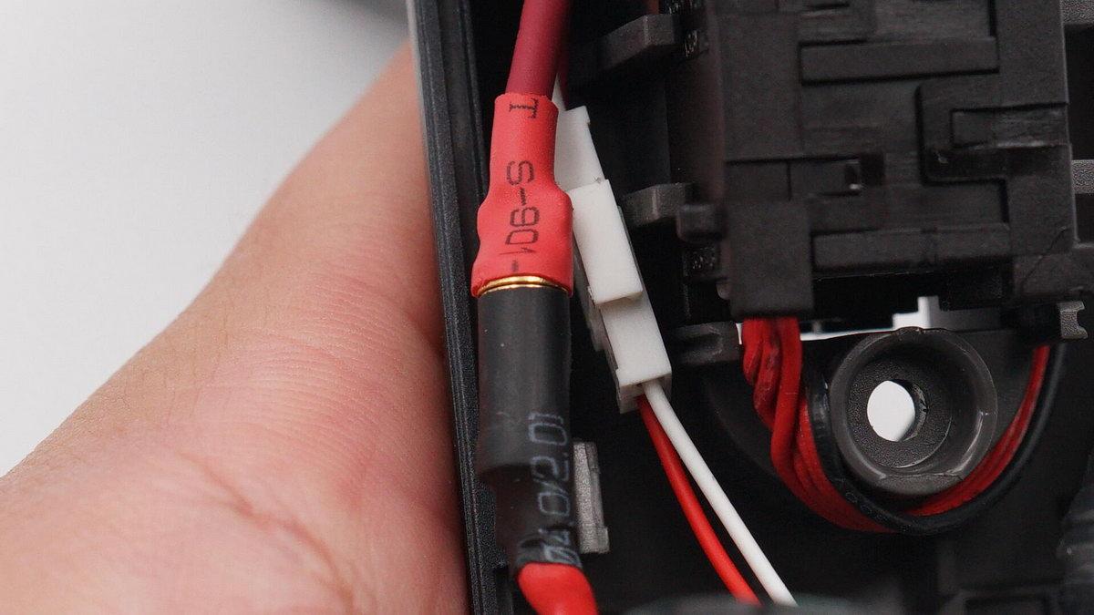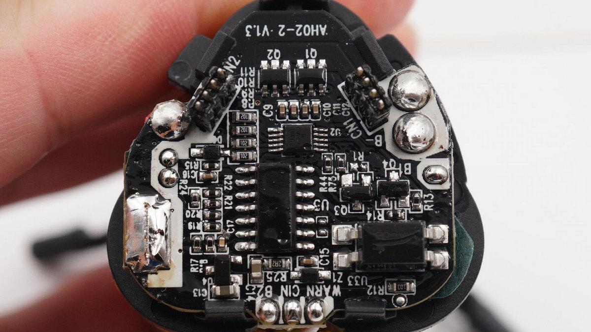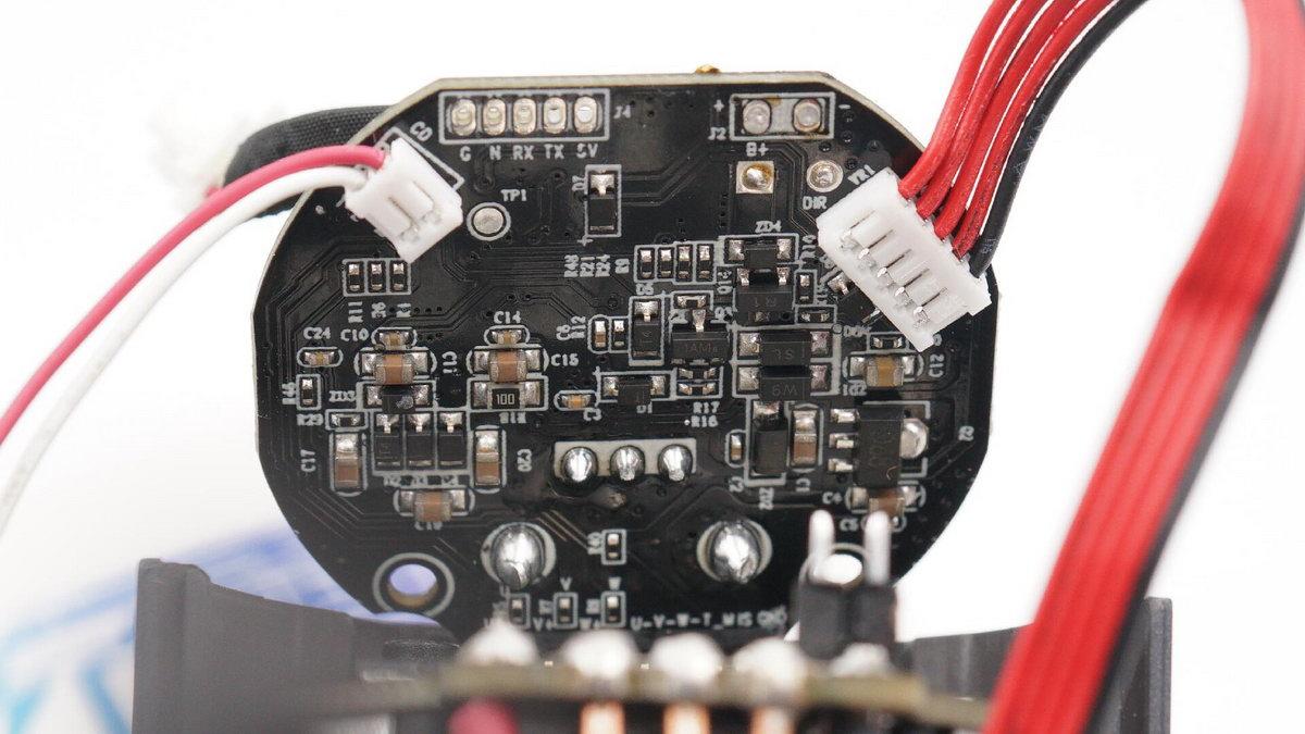 最后便可以将主体外壳拆开,可以看到内部由电池组、无刷马达和几块小板组成,通过导线连接通电。