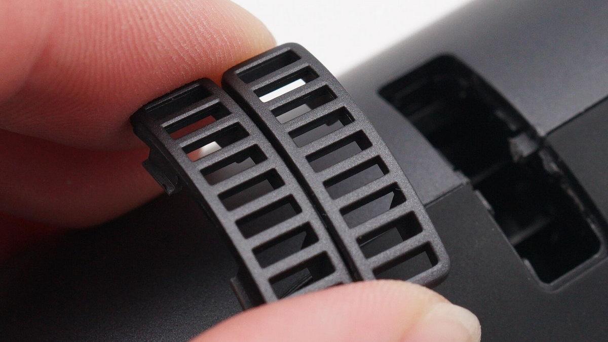 外壳上凹印PC+ABS字样,表明了电钻机身壳使用材质。