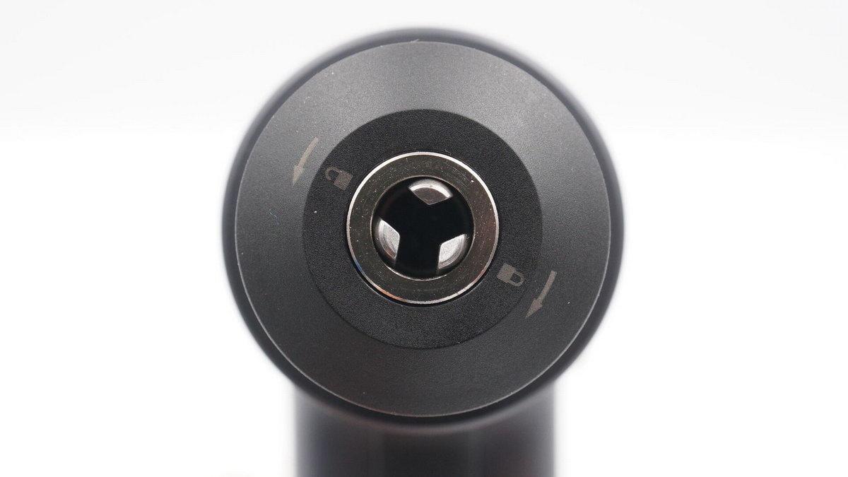 批头/钻头插孔特写,端部外壳上印有组装提示箭头。