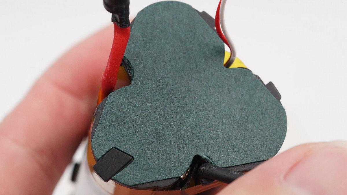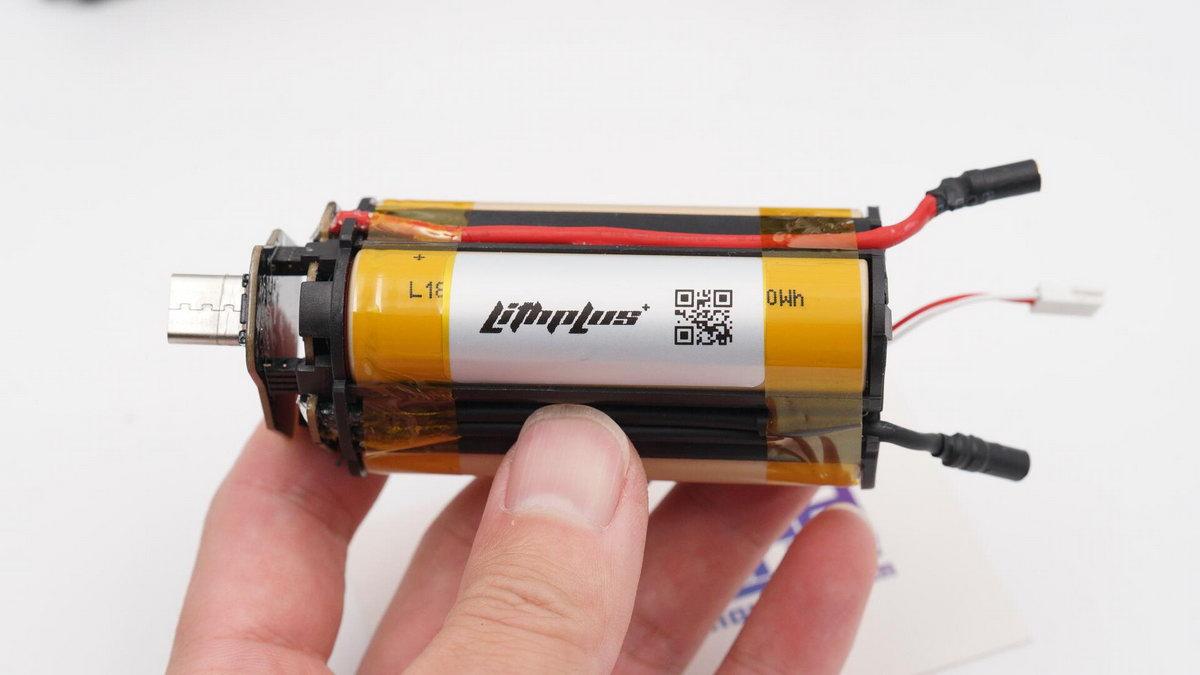 电池组三颗锂电池来自辽宁九夷锂能股份有限公司,两端缠绕胶带固定。