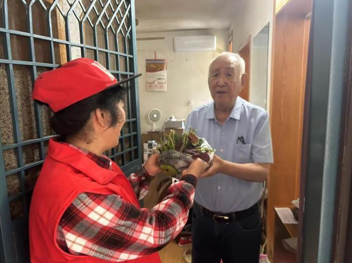 “谢谢社区的关心,谢谢你们下雨天给我们这些老年人送上门,这菜又大又新鲜,真心感谢!”这是和平路街道当涂路社区小区居民活动中心志愿者为辖区困难老人送去应季蔬菜,居民志愿者利用小区居民活动中心场地种植有机蔬菜,定期为困难群体送去菜品,让居民感受到社区温暖。