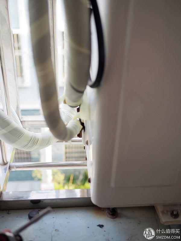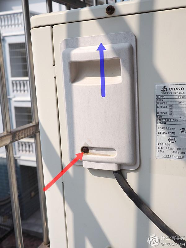 ▲我自己安装后经过8年的长测,这台老空调除了室内机外壳发黄,原白色排水管外露部分老化断裂,在断口处外接了一根新的蓝色排水管外,在其它使用功能上、外观上都表现正常(表扬一下自己裆粘非凡的安装水平),但是从老化的排水管可以看出室外机工作环境比较恶劣,受到阳光雨水侵蚀,也是时候进行检查和保养了。