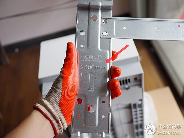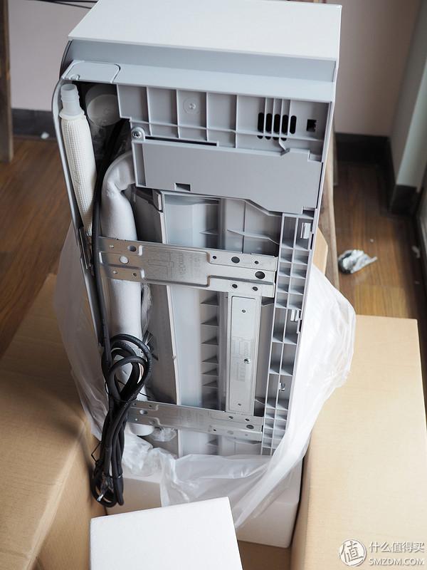 ▲即使在安装完成后看不到的室内机背面,小米外观仍然是令人赏心悦目的。从拆下的挂墙板上看到标示了和墙壁安装的最小距离。