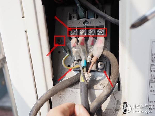 ▲用十字螺丝刀拧松接线螺丝,拆下线束各接头,将之前拆分的铜管尽量橹直,方便后续穿外墙洞。这样就完成了断开了内外机之间的连接工作了。