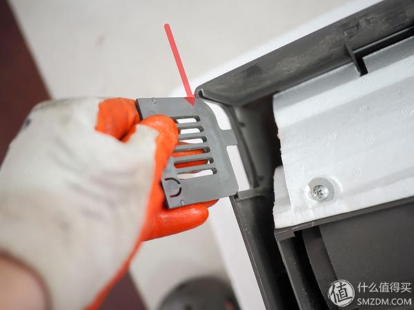 ▲按照图中方法将滤网从卡子中顶出,并拆下