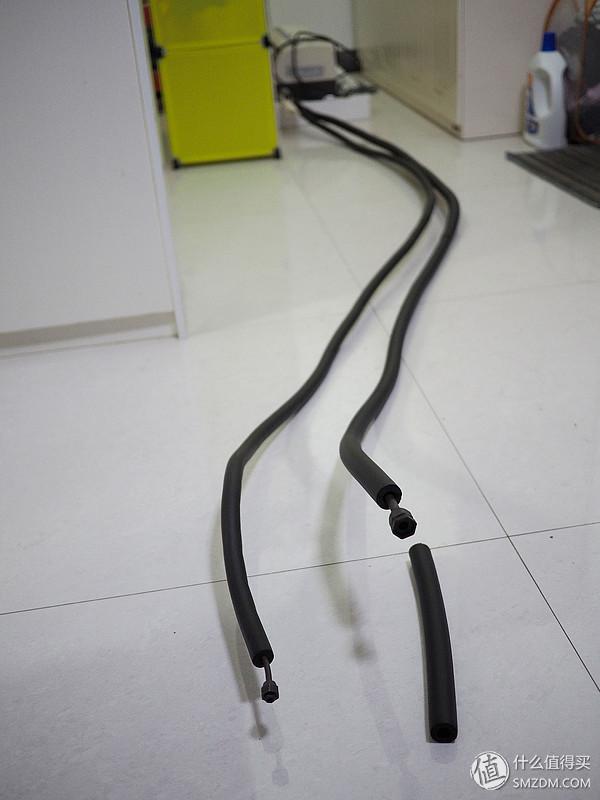 ▲排水管老化断裂,外缠绕扎带变硬,顺便一起更换。这种水管是是双面的,内侧是一层黑色的胶类,卖家在页面宣称可以保修十年,有点可怕,十年说不定他店铺都凉凉了