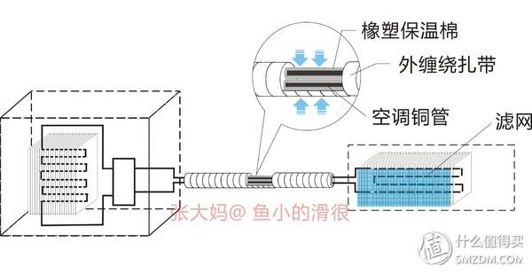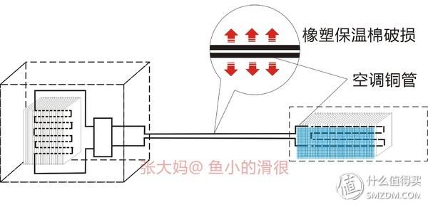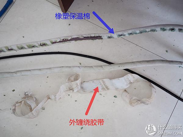 ▲在室外的扎带、保温棉材料会老化、破损后,制冷剂流动时和外界的空气或介质发生热量交换损失。