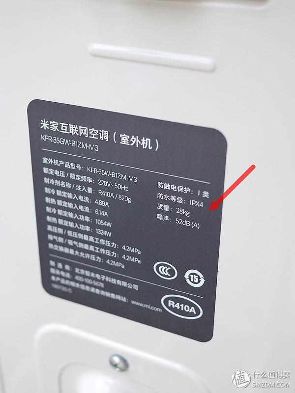 ▲室外机标签,有意思的是上面标识出了工作噪声(52dB)。对于空调这种安装之后一般会使用十年以上甚至数十年的设备来说,长期使用后室外机噪声的抑制才是值得注意的方面。