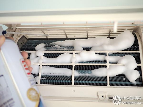 ▲这种空调清洁剂的使用很简单,直接喷到要清洁的部件或者散热鳍片上,待几分钟后其自行化水即可。