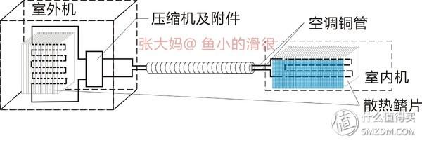 散热鳍片:负责热量的交换,室内吸收热量,室外放出热量