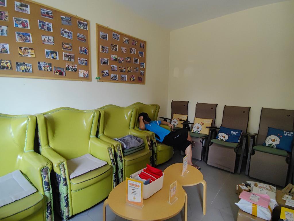 8月27日,在成都高新区中和街道的“中和·蜂巢”职工驿站,一名外卖员正在驿站内午休。新华社记者 董小红 摄