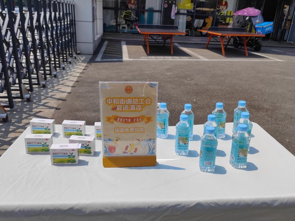 位于成都高新区的一处“户外劳动者清凉物资自取点”。新华社记者 董小红 摄