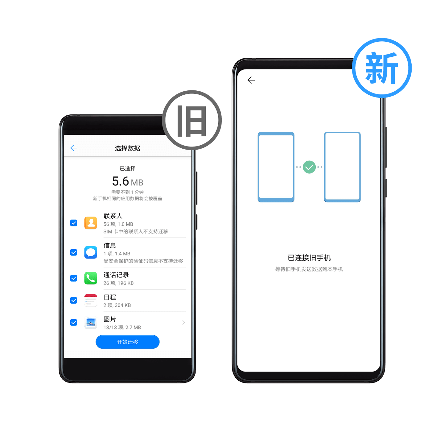 买了一部华为手机,想将旧安卓手机上的数据迁移到华为手机。
