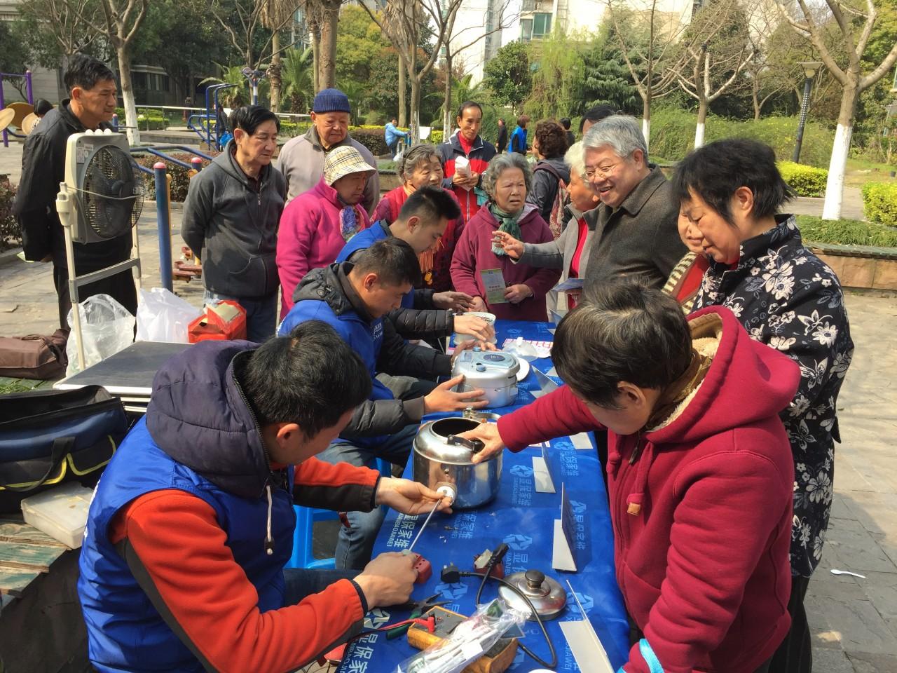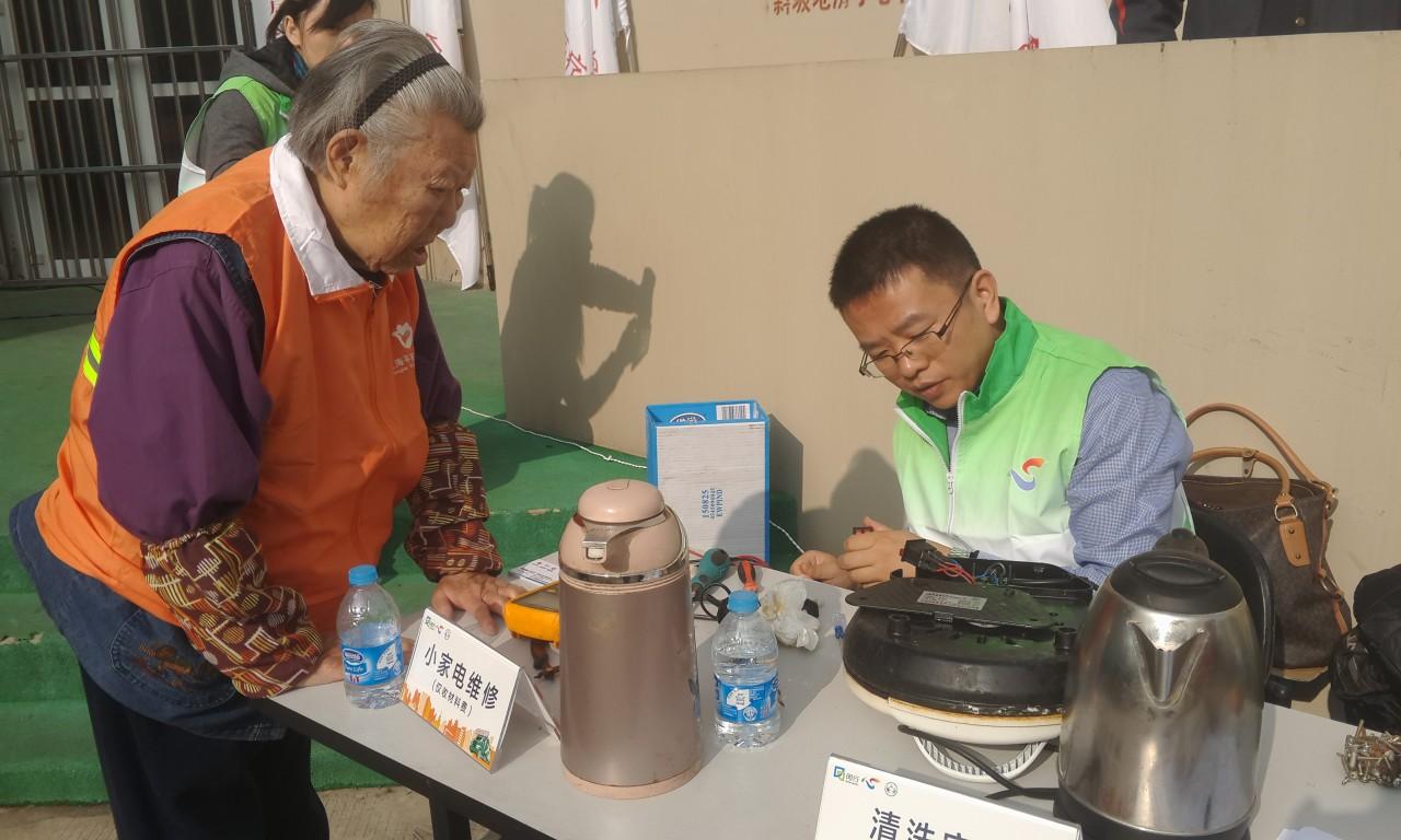 我们现在显保家维在闵行区整个有18个服务点,相当于闵行各个街镇全覆盖。每天上午9点至11点到社区设摊,提供家电维修的便民服务。在这期间,只要居民过来维修,我们都只收取材料费。