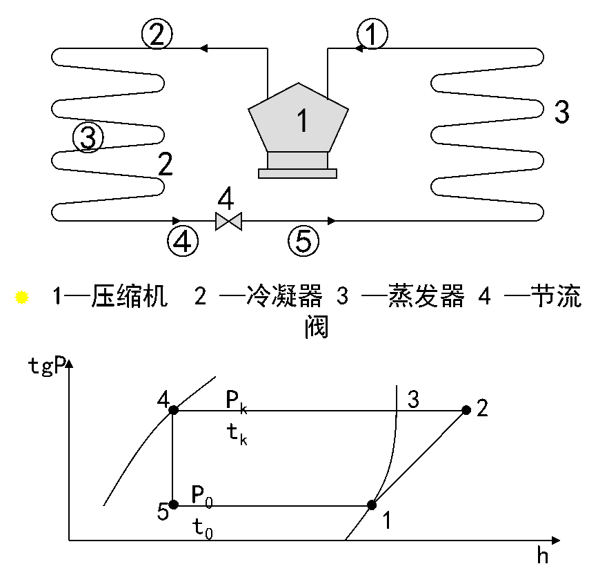 单级制冷机理论循环原理图: