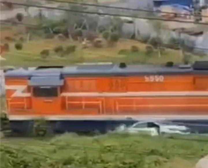 贵阳一轿车与行驶火车头相撞,所幸无人受伤!司机:关着车窗没听到火车鸣笛声