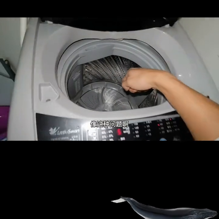 当我们洗衣机关掉停掉的时候,我们转一下这个波轮,这个波轮可以单独的左右摇摆,可以正常的活动,统一管理统一售后。但是话它这个不行,像这种问题,让洗衣机拆开,因为它脱水是可以转的动的。