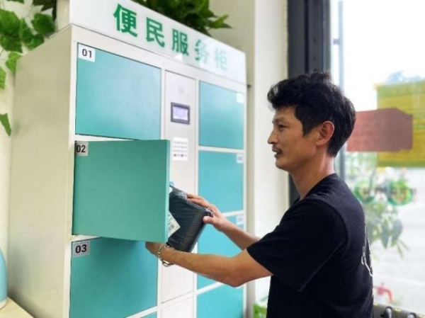(图为新民小区的居民在便民服务柜取快递 陈芯蕊/摄)