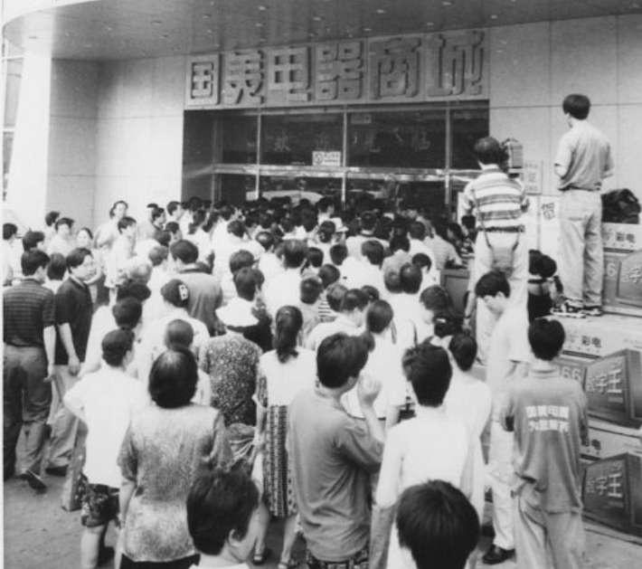 低价的刺激曾让10多万南京市民涌入国美门店,根据当时媒体报道,“五分钟后玻璃大门被挤破,当天‘打扫战场’被挤丢的鞋子装满好几个大纸箱。”