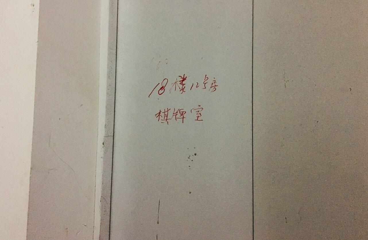 记者今天中午来到该小区,发现小区3部电梯内以及18楼梯门上均有麻将室手写小广告,显示该麻将室位于1单元18层12室。随后,记者来到该户门口,没有听到麻将声,敲门无人应。