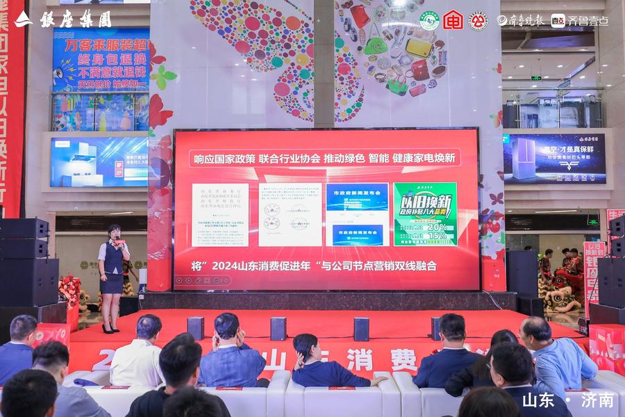 在现场嘉宾及观众的一同见证下,政企协会和媒体相关领导共同启动“2024山东消费促进年暨银座集团家电以旧换新行动”,联手用“真金白银”的补贴及优质的产品和服务为全省广大消费者献上家电升级换新大礼。