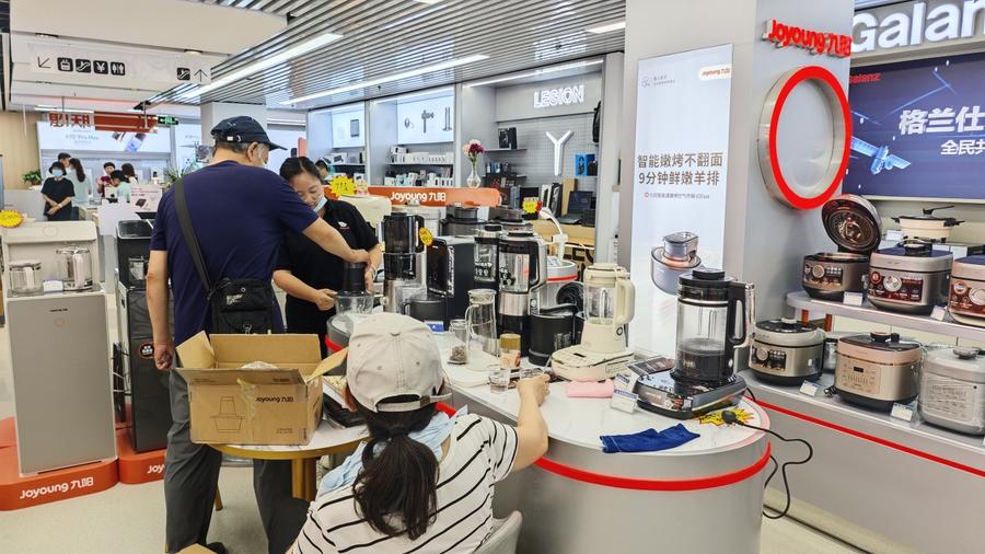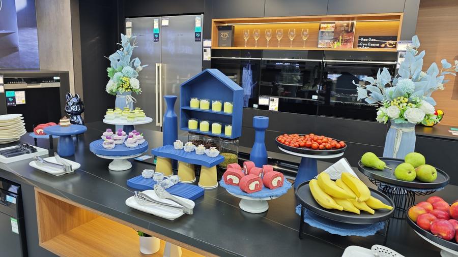 重装开业当日,已有众多市民在店中选购心仪家电,尤其是空调、冰箱等清凉家电成为大家体验、购买的热门品类。值得一提的是,西门子、博士、美的、老板等品牌为顾客准备了水果、甜品、饮料等精致餐品,让不少顾客直呼:“太贴心!”