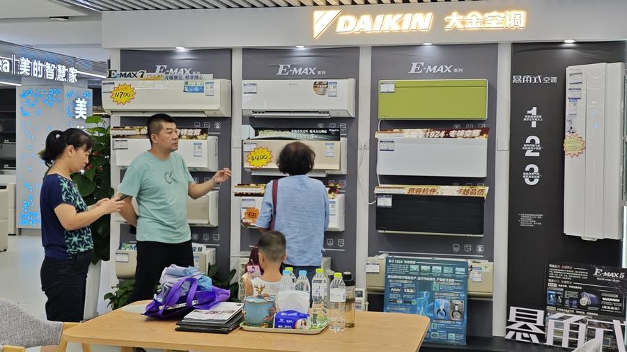 7月26日,位于泺源大街的银座电器商城店经过重装升级后正式开业,以全新面貌和业态组合亮相泉城。在店内可以看到,空调、冰箱、彩电等全品类家电以旧换新补贴活动正在火热进行,吸引了诸多市民前来围观。