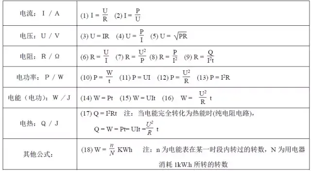 初中电学公式归纳与简析