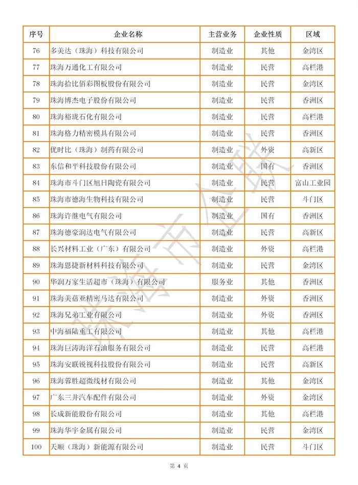 主办方表示,上榜企业在行业具领先地位,自主创新能力强,企业成长性好,企业管理制度完善,具有辐射带动作用,有望成为业界标杆。下一步,将积极推动珠海企业100强与广东企业500、中国企业500强的交流合作,促进珠海企业与国内外企业的合作发展。