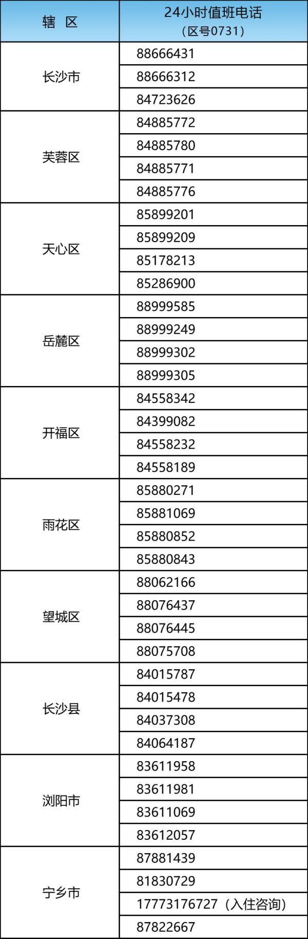 长沙市各乡镇(街道)值班电话