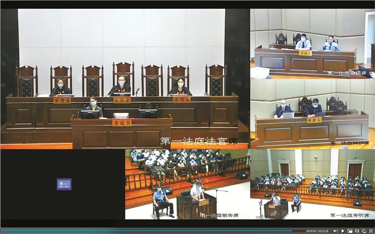 2022年8月30日,钱小峰挪用公款、受贿案一审开庭,图为庭审现场(视频截图)。(常州市中级人民法院供图)