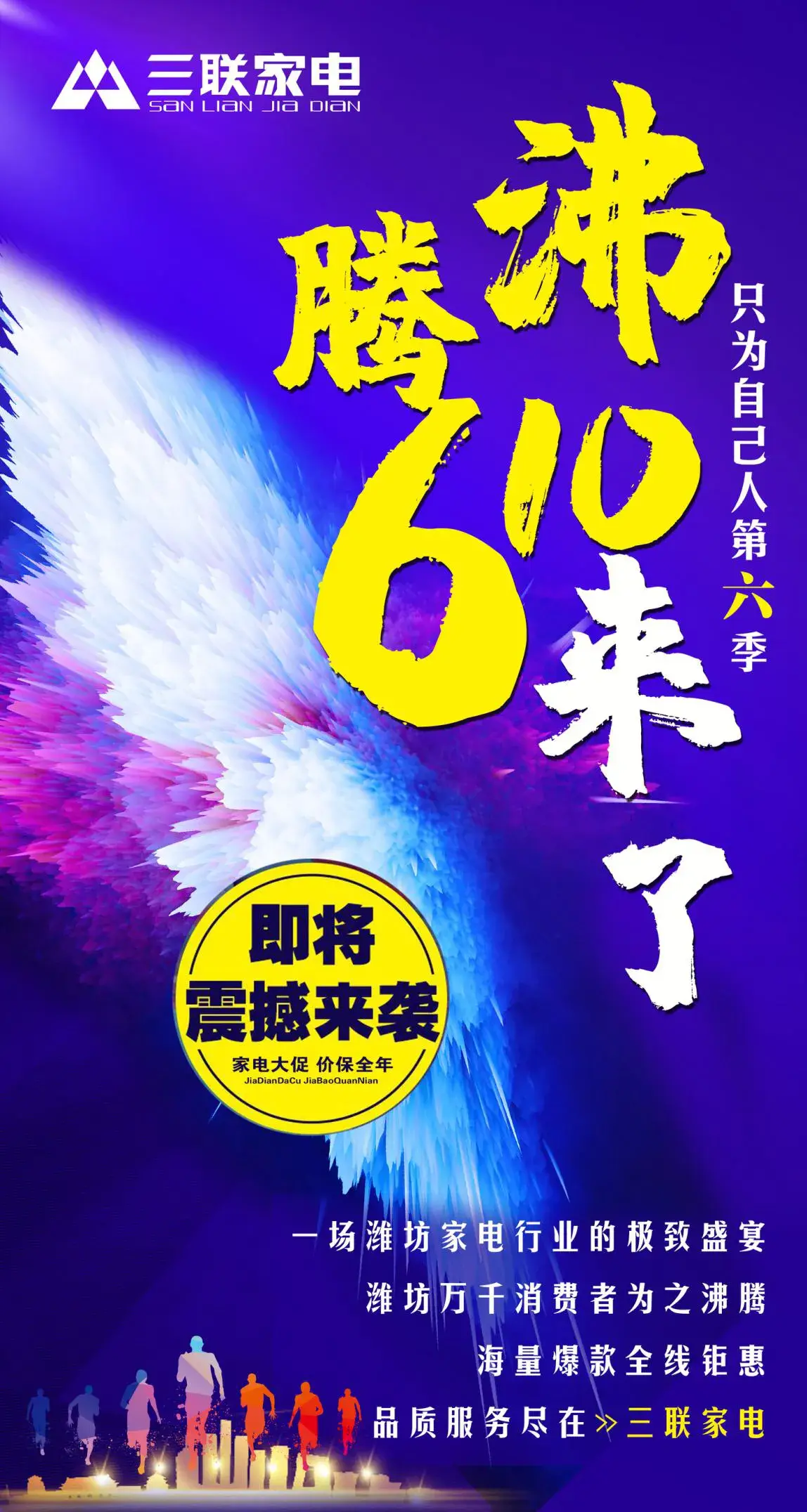 各种网站上现在都开始了打折促销活动,琳琅满目让人看花了眼,实际买到手并没有多么实惠。那有没有适合潍坊老百姓自己的家电节日?还真有!潍坊三联家电沸腾6.10大促即将来袭,这是三联每年为潍坊消费者量身打造的一场家电饕餮盛宴,承诺价保全年,全城全网任性比价!