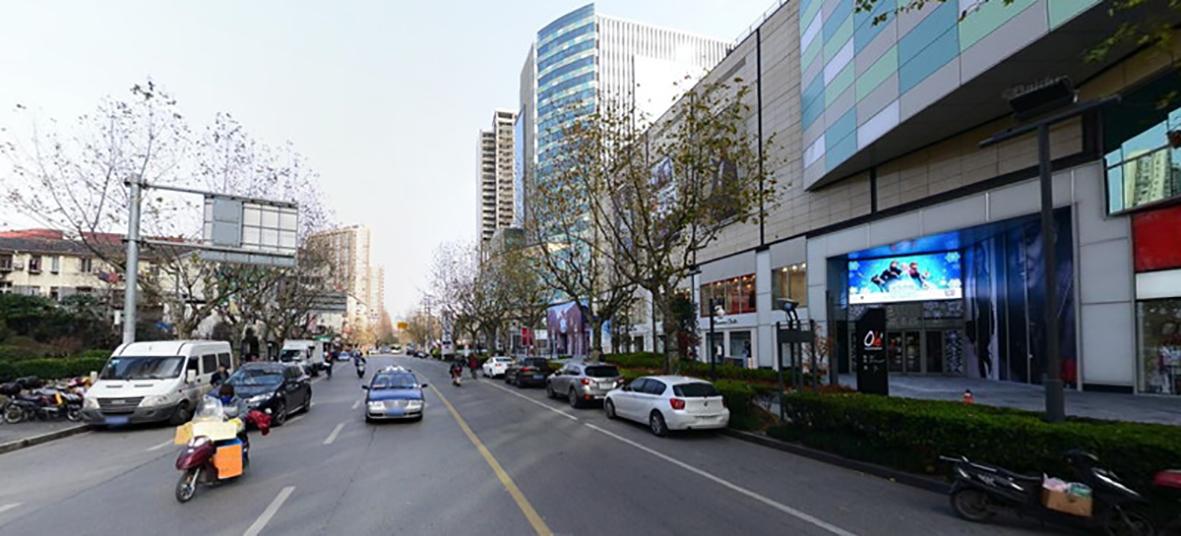 微报姐跟着百度地图上的街景逛了一圈发现,上海遵义路的某些路段相当繁华,也很繁忙。路边有多家大型购物中心,以及学校、酒店、银行。