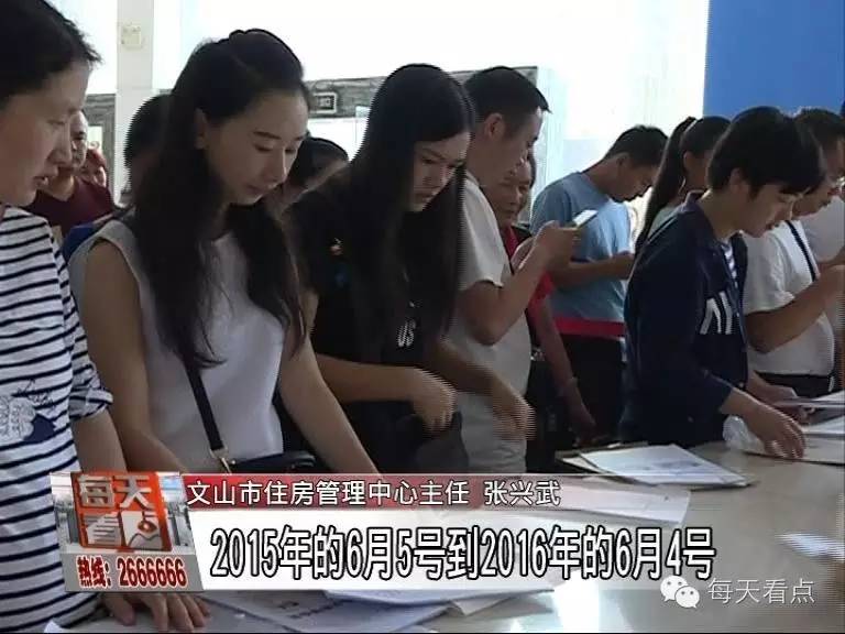 文山市住房管理中心主任 张兴武:“明天周末不办理业务,我们的兑现方案是这样规定的:2015年的6月5号到2016年的6月4号,只要你在这个阶段产生的比如你签订了合同并备案,出具不动产发票和交清房款的税款的发票,还有出具开发商交清房款的证明,这些资料只要是在这个阶段产生的,过后也还兑现。”