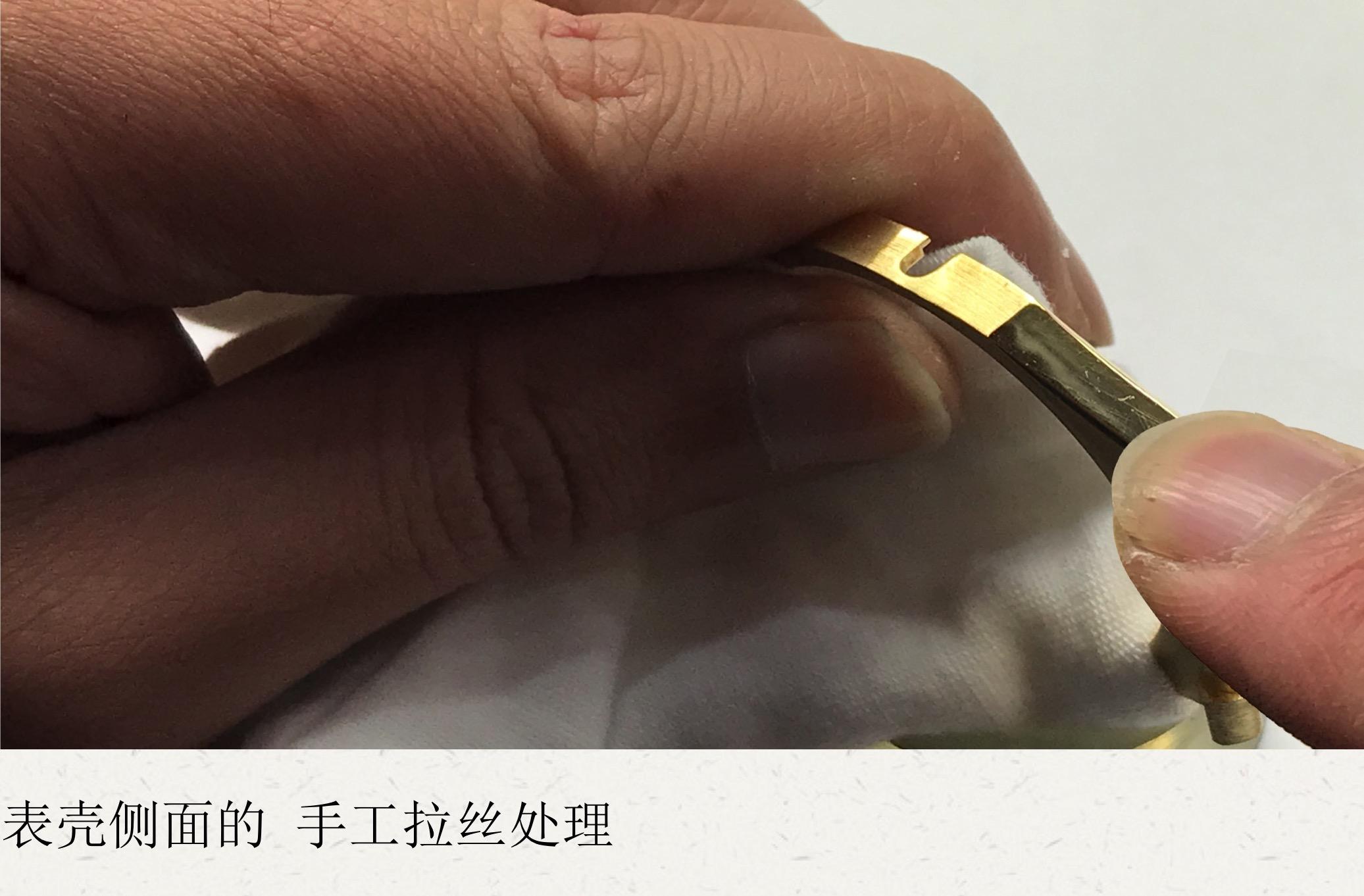 表壳侧面的 手工拉丝处理