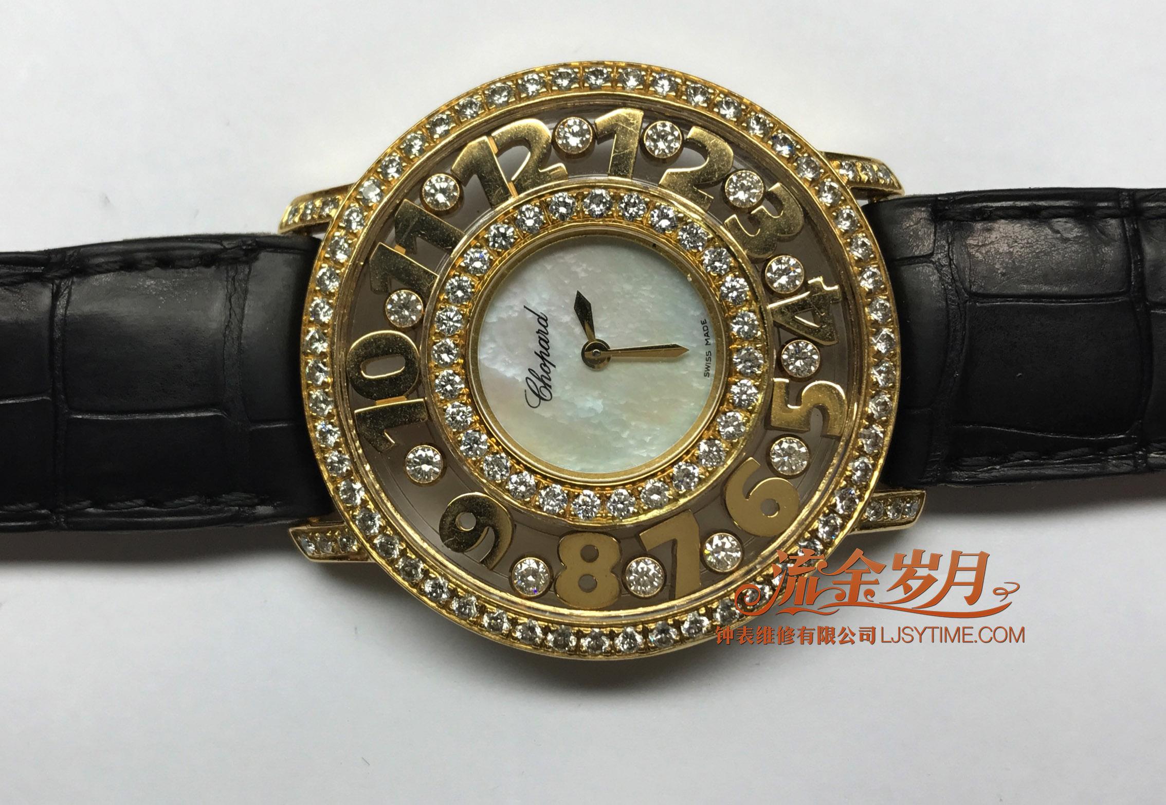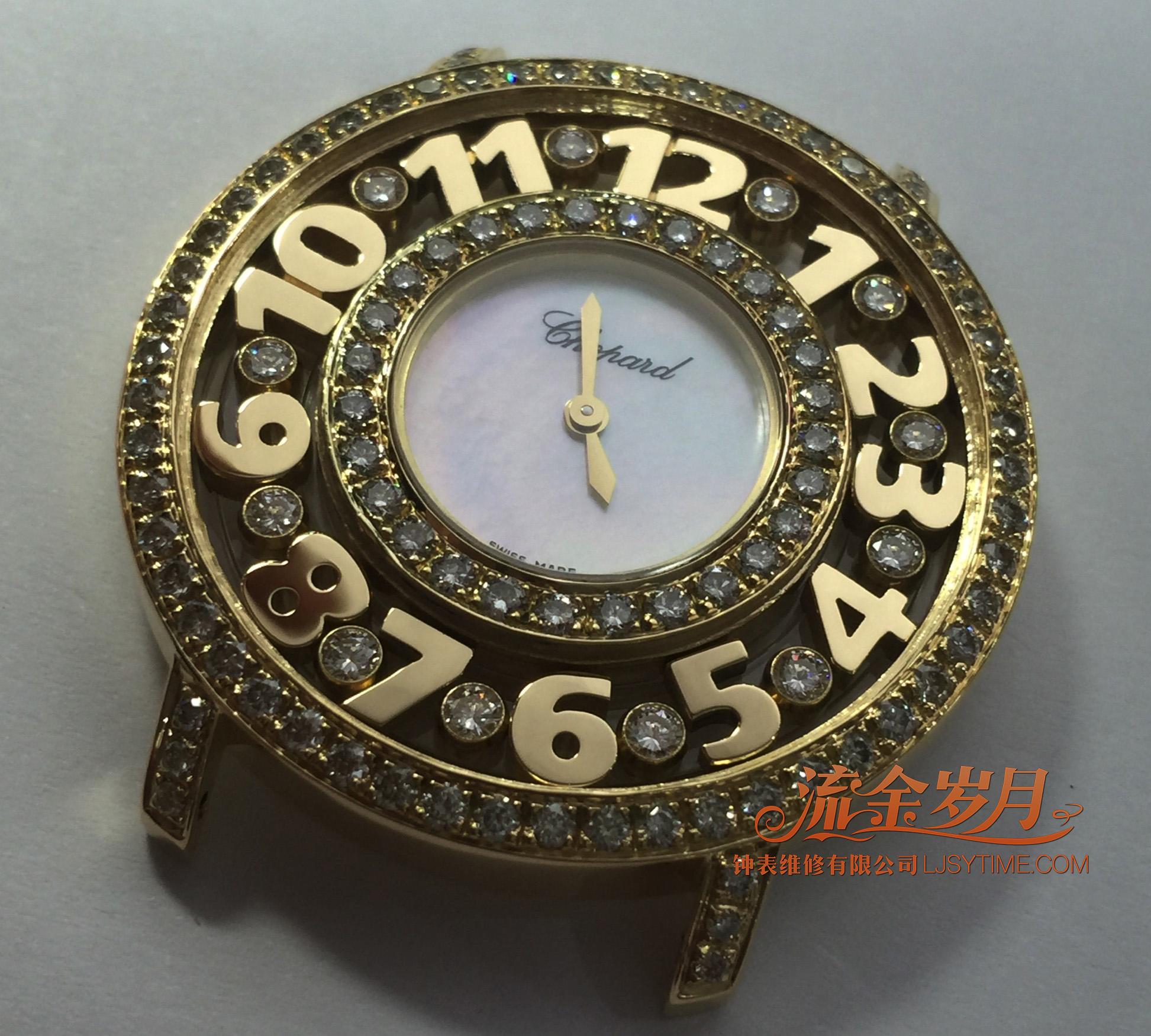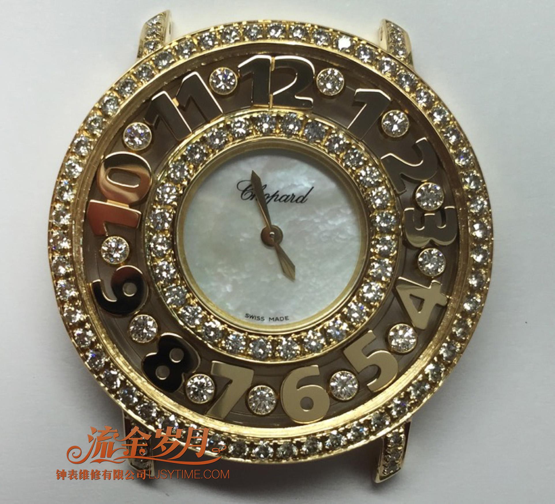 这只萧邦快乐钻石,表壳进水、走珠和刻度氧化。