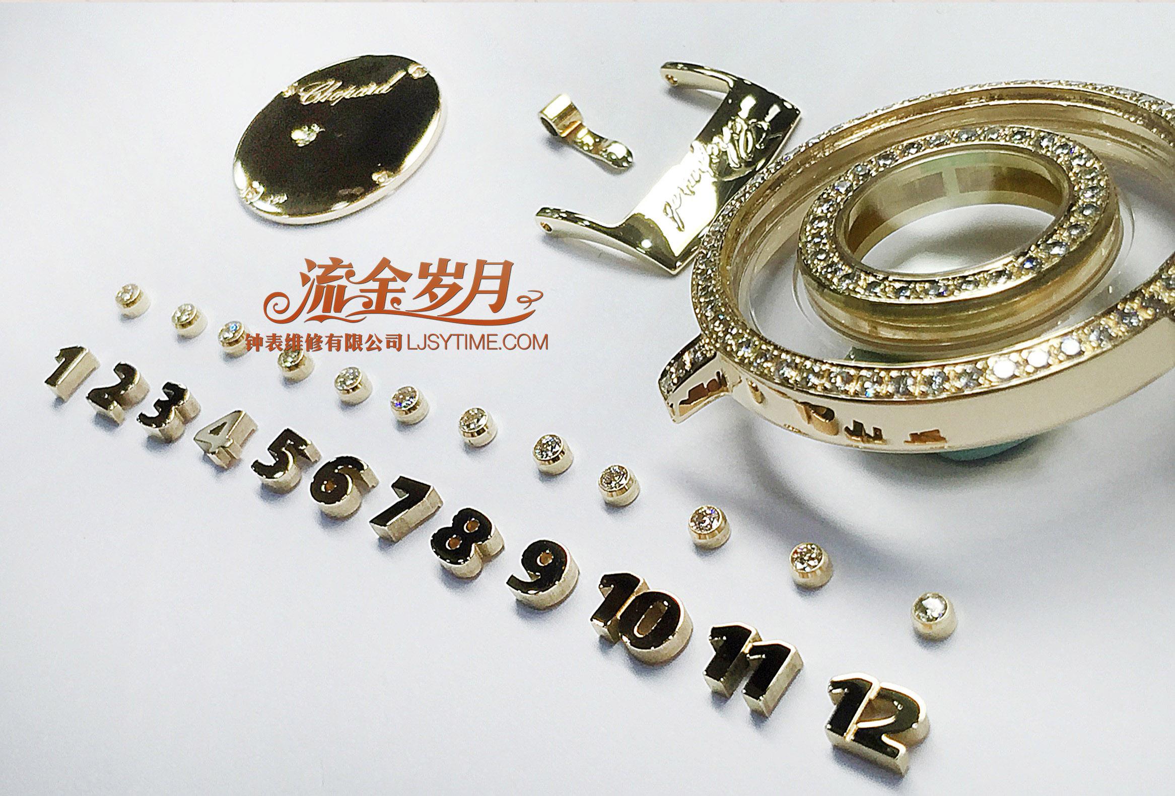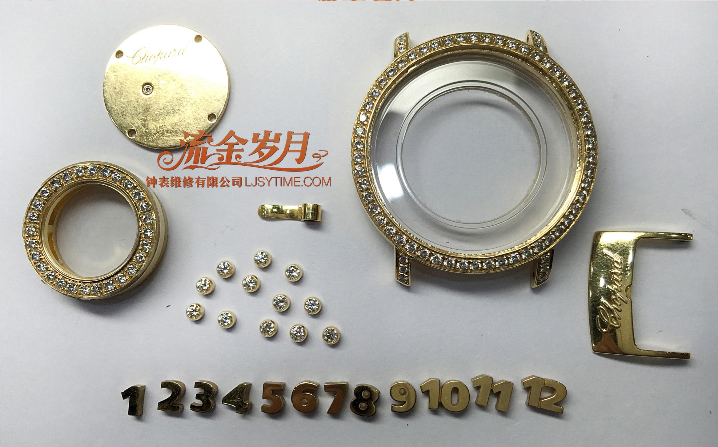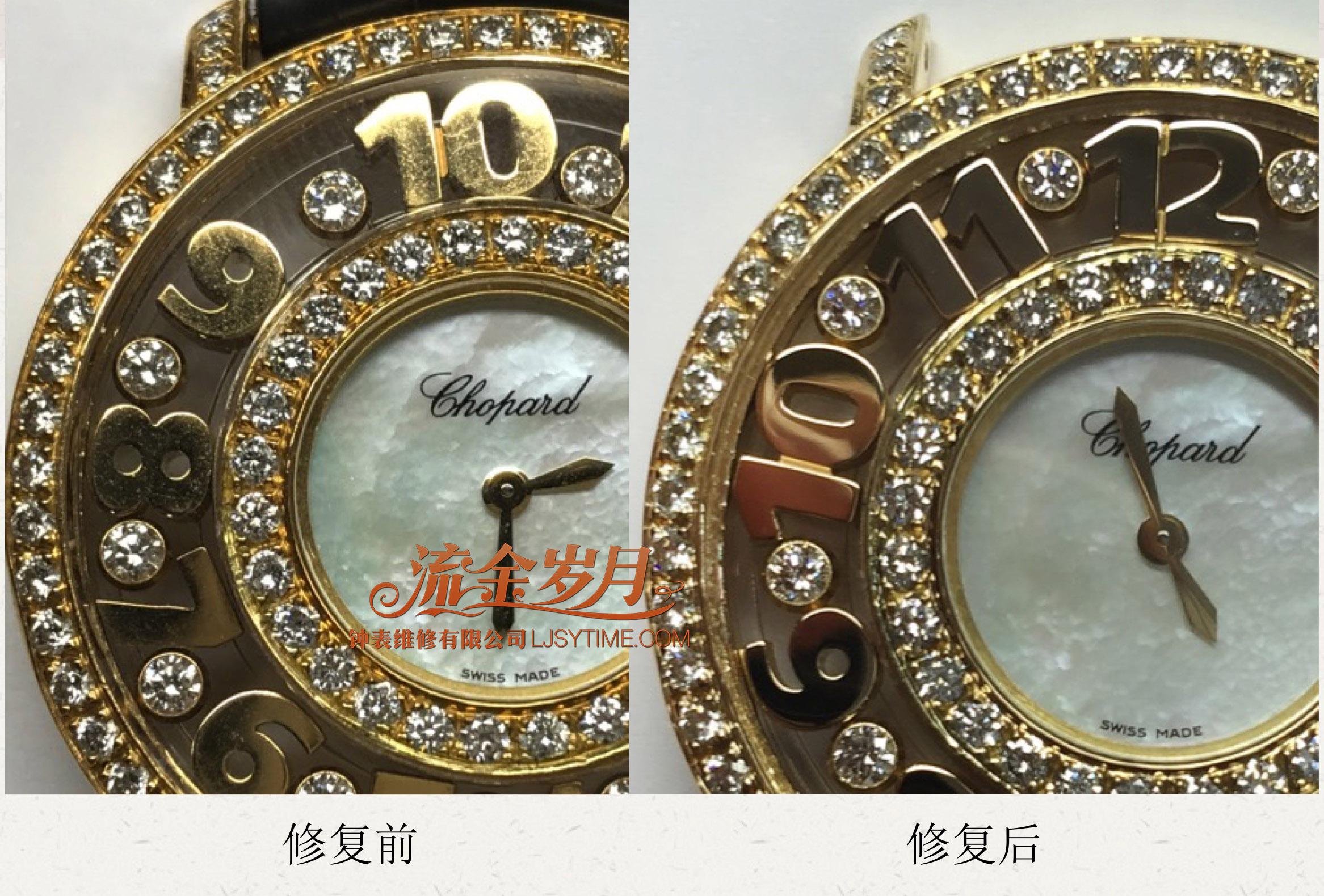 这只萧邦快乐钻石,表壳进水、走珠和刻度氧化。