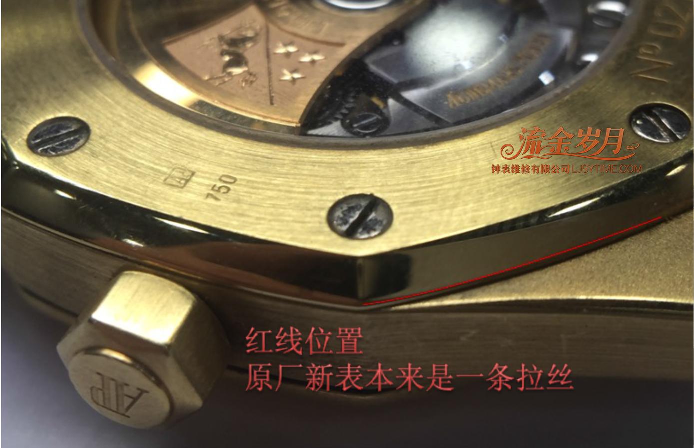 这只被他人过度打磨的爱彼皇家橡树,表的上圈斜面本来是光面,却被粗糙处理成“拉丝”。
