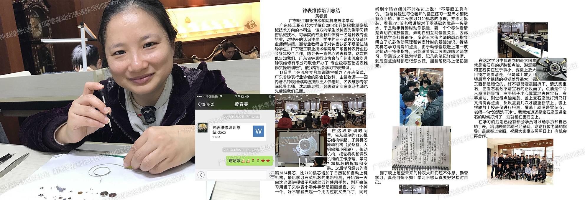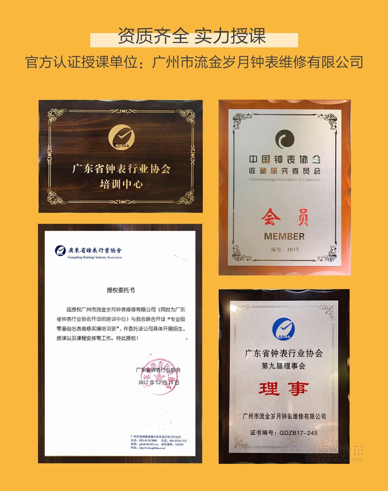 总之,十天时间,对于这个培训,也许是跟自己本职工作相关,也许是蛮有兴趣,学习还是非常认真的,收获也非常多。非常非常感谢师傅们的指导!培训主办:广东省钟表行业协会、广州市流金岁月钟表维修有限公司 咨询——添加流金岁月啊肥:18620887733 电话同号。
