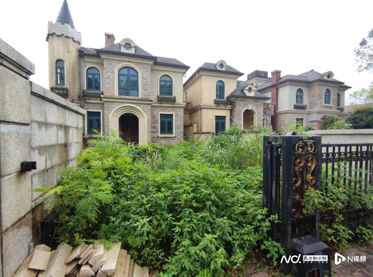 部分联排别墅还是毛坯,里面也并未装修,外部花园也杂草丛生无人打理。