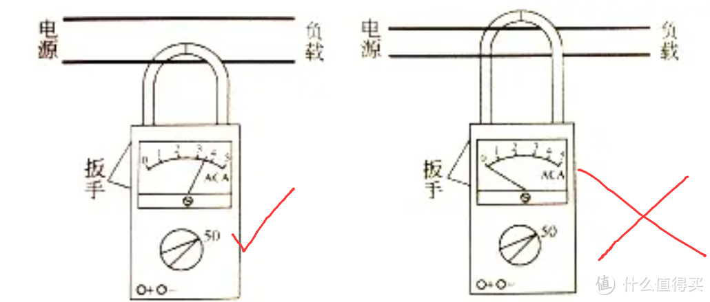 左边是钳形表的正确用法,而家庭环境下基本都是右边的情况,夹不到单独的零或火线