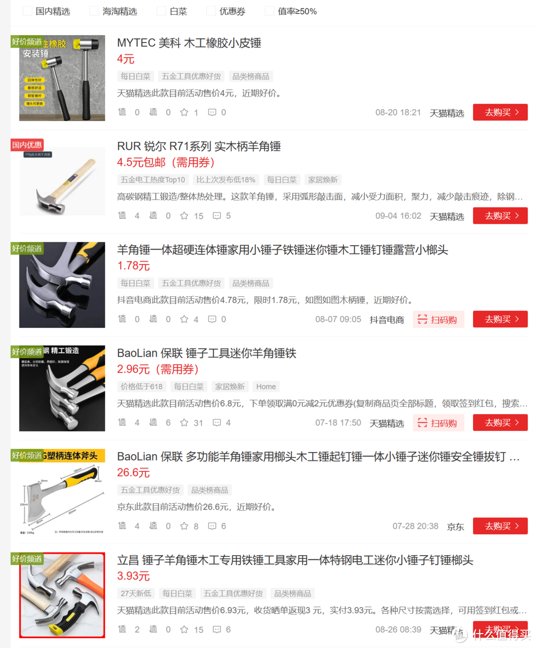 随便一搜索好价频道,到处都是不到10快钱的羊角锤。
