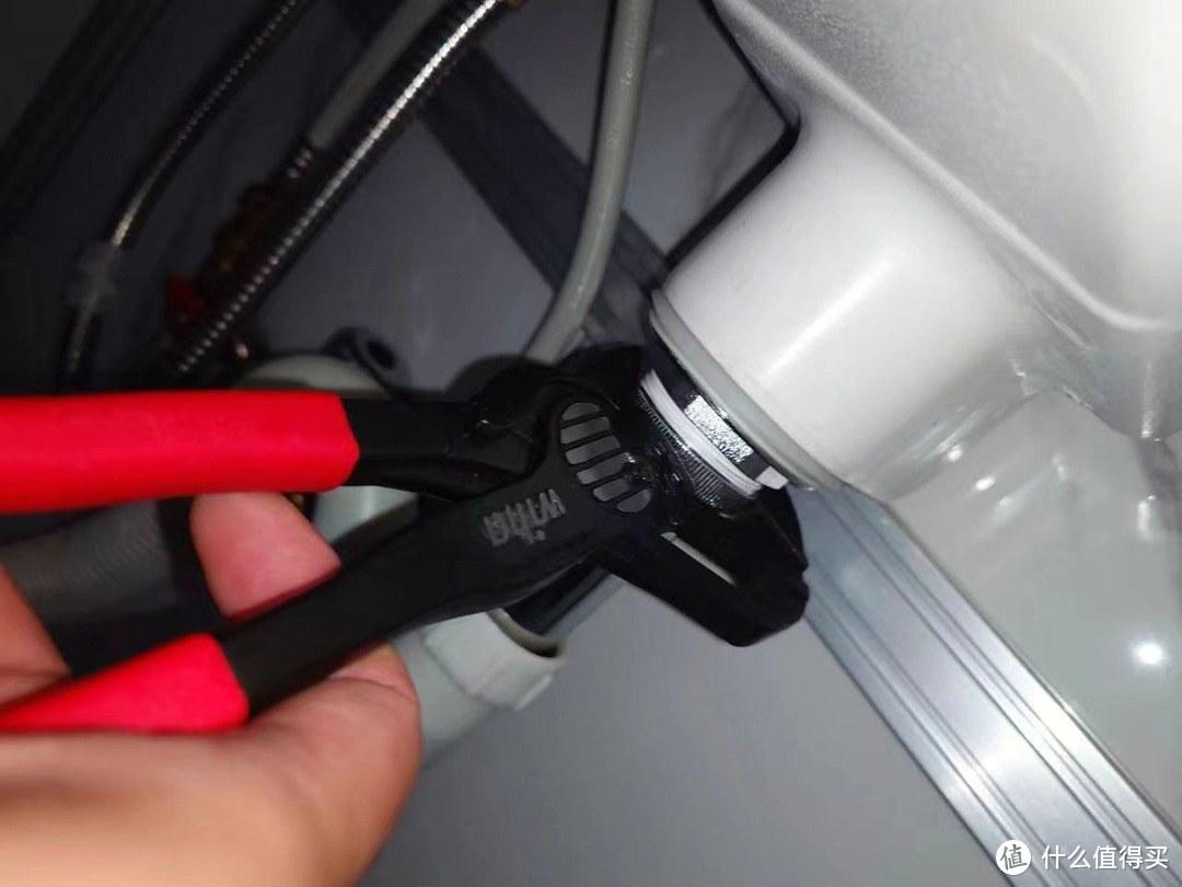 使用10寸大的钳式扳手,拥有巨大的夹持范围,甚至可以用来拧下水。